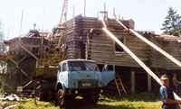 Самые нижние бревна церкви подлежали полной замене. Для этого нами использовались отборные бревна возраста 80-120 лет. Старые имели такой же возраст при таком же диаметре.