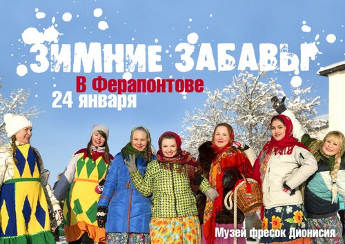 Любой выходной день можно сделать ярким и насыщенным! Музей фресок Дионисия приглашает всех желающих на ежегодный праздник «Зимние забавы в Ферапонтове», который пройдёт 24 января. Начало в 12 часов.