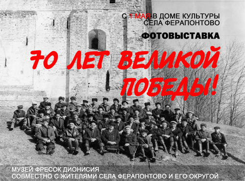 Выставка «70 лет Великой Победы!» открылась в ферапонтовском Доме культуры первого мая. Она является совместным проектом сотрудников Музея фресок Дионисия и жителей села Ферапонтова.